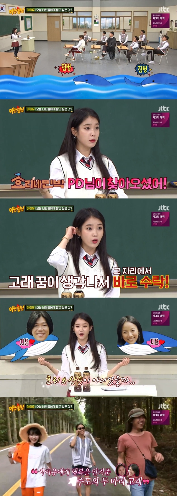 이날 아이유는 "내가 큰 일이 일어나기 전에 꿈들을 자주 꾼다"라며 "예전에 꿈 속에서 고래 두마리를 봤었다"라며 " 그 꿈을 깨고 나서 기분이 좋았는데, 얼마 지나고 '효리네 민박' 제안이 왔다"라고 말했다.
