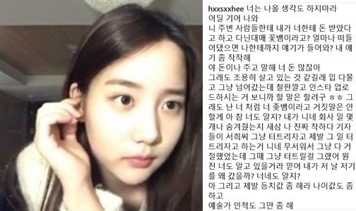 한서희는 지난달 31일 자신의 인스타그램에 "너는 나올 생각도 하지 마라. 어딜 기어 나와. 네 주변 사람들한테 내가 너한테 돈 받았다고 하고 다닌다며 꽃뱀이라고? 얼마나 떠들어댔으면 나한테까지 얘기가 들어와? 내 얘기 좀 작작해"라며 불쾌함을 드러내며 'YG Energy LET'S Greet'라고 적힌 화장실 에티켓 포스터 사진을 함께 게재했다.