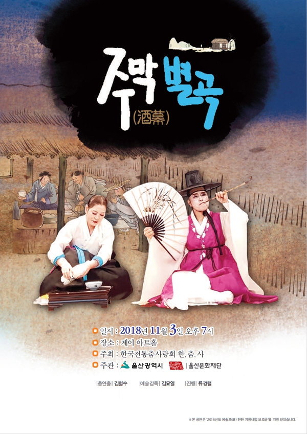 오는 3일 오후 7시 울산 중구 제이아트홀에서는 제4회 한국전통춤사랑회-한ㆍ춤ㆍ사의 춤 연극 '주막(酒幕) 별곡'이 진행된다.