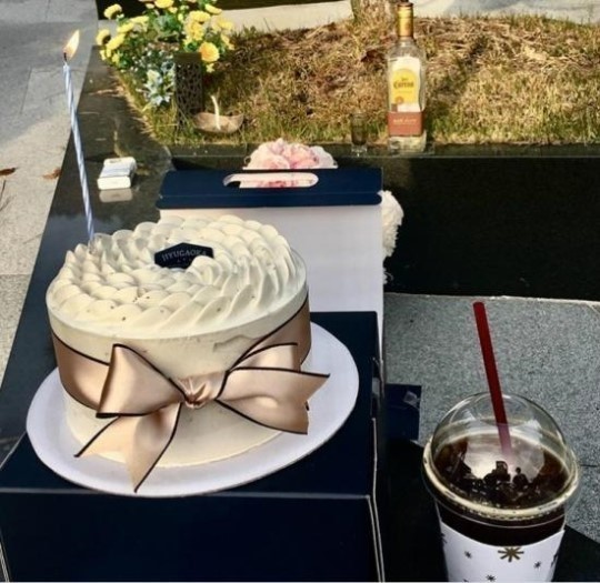 공개된 사진에는 서울추모공원에 마련된 조민기의 묘에 차려진 생일상의 모습이 담겨있다. 초 하나가 꽂힌 생일 케이크, 담배, 양주, 커피 등 생전 고인이 좋아했던 음식과 기호품이 차려져 있다.