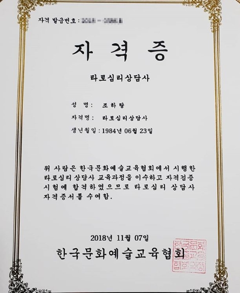 저에게도 힐링이 되어 심리 상담 쪽 공부를 해오다가 자격증 취득 준비를 해 이렇게 자격증 취득을 했습니다.