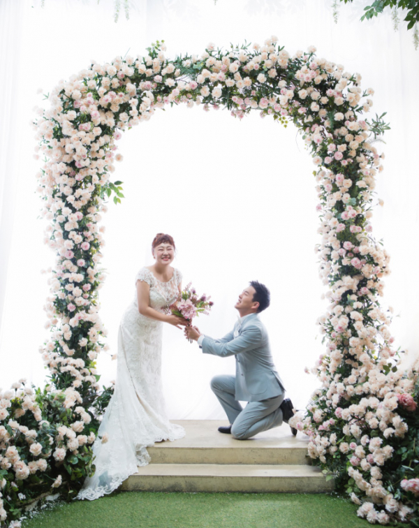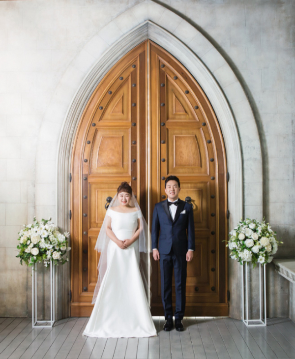 공개된 사진에는 결혼 전 30kg 감량에 성공해 러블리한 드레스 자태를 뽐내는 신부 홍윤화와 훈훈함을 한껏 자랑하는 예비신랑 김민기의 모습이 담겨있다. 평소 코미디언 커플답게 차진 입담에 몸을 사리지 않은 개그 열정으로 웃음을 선물했던 두 사람은 이번만큼은 예비부부의 수줍은 면모로 보는 이들을 설레게 만든다.