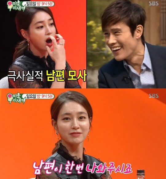 이병헌-이민정의 결혼식 사회를 맡은 MC 신동엽이 두 사람의 프러포즈에 대해 감탄하자, 이민정은 "근데 너무 티가 났다"라고 솔직하게 고백했다. 특히 '미우새' 어머니들은 "이병헌도 '미운 우리 새끼'에 나왔으면 좋겠다"라고 말했고, 모벤져스의 말을 들은 이민정은 카메라를 향해 "남편이 한 번 나와주시죠"라고 쿨하게 말해 이목을 집중시켰다.