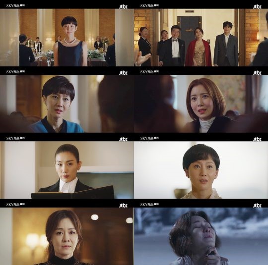 이날 방송에서는 자녀들의 입시를 위해서라면 뭐든 하는 엄마들의 이야기가 그려졌다. 한서진(염정아 분)과 노승혜(윤세아 분)는 입시 코디네이터 김주영(김서형 분)을 잡기 위해 신경전을 펼쳤다. 그런 가운데, 아들의 서울 의대 합격으로 부러움을 샀던 이명주(김정난 분)가 스스로 목숨을 끊어 충격을 줬다.