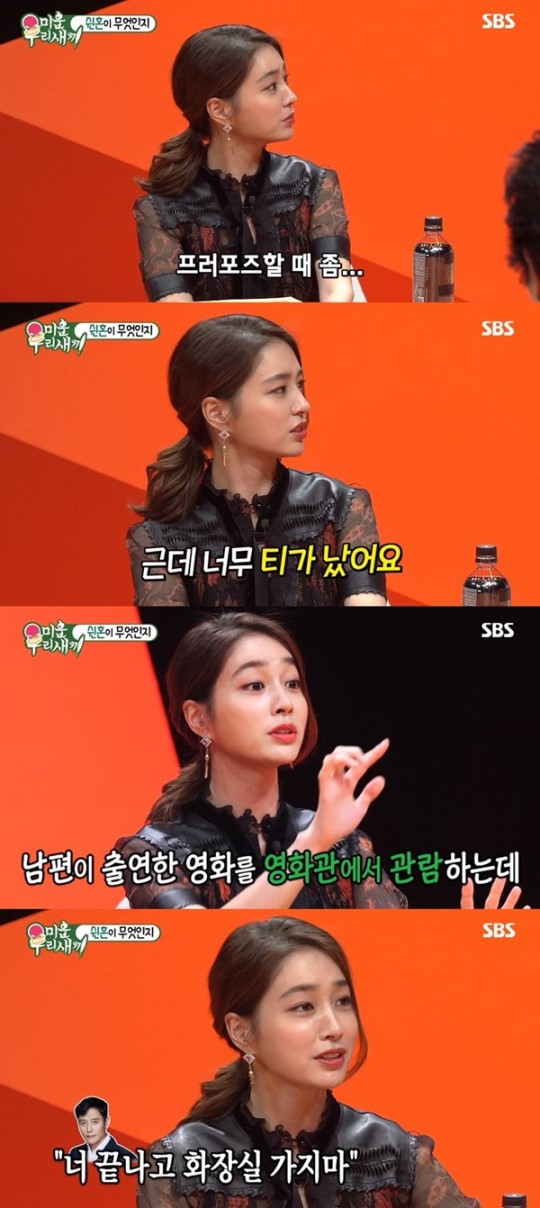 이민정은 25일 방송된 SBS '미운 우리 새끼'(이하 미우새)에서 "남편이 나에게 프러포즈할 때 너무 티가 났다. 내가 눈치가 900단"이라고 말했다.