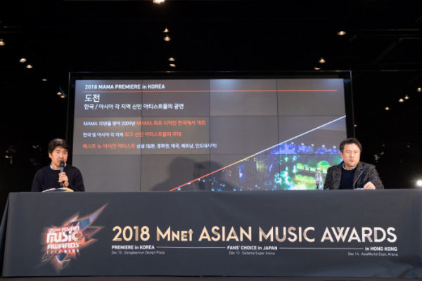 CJ ENM '2018 MAMA' 기자간담회가 26일 서울시 마포구 상암동 CJ E&M센터 1층 탤런트스튜디오에서 진행됐다. 이날 CJ ENM 김현수 음악컨벤션사업국장, 김기웅 Mnet 음악사업부장이 참석했다.