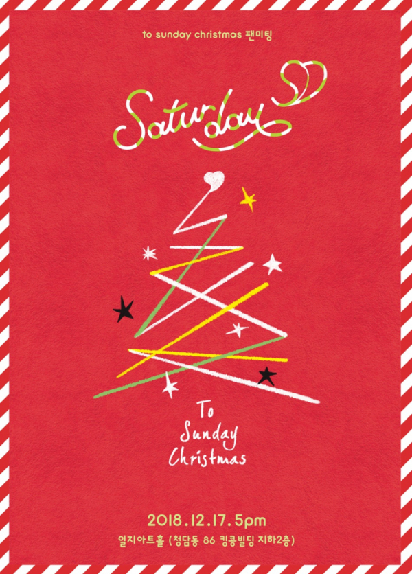 세러데이 소속사 SD엔터테인먼트는 5일 "오는 17일 오후 5시 서울 강남구 청담동 일지아트홀에서 ‘투 선데이 크리스마스(to Sunday Christmas)’ 팬미팅을 개최한다"고 밝혔다.
