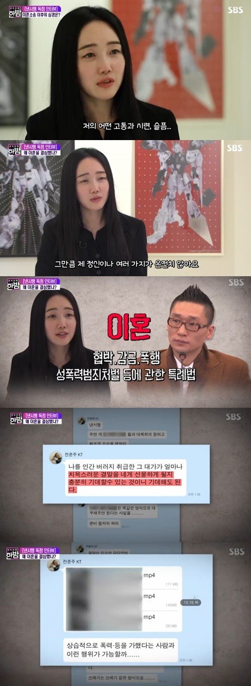 '한밤' 낸시랭이 전 남편 왕진진(본명 전준우)과의 이혼 심경을 털어놨다.