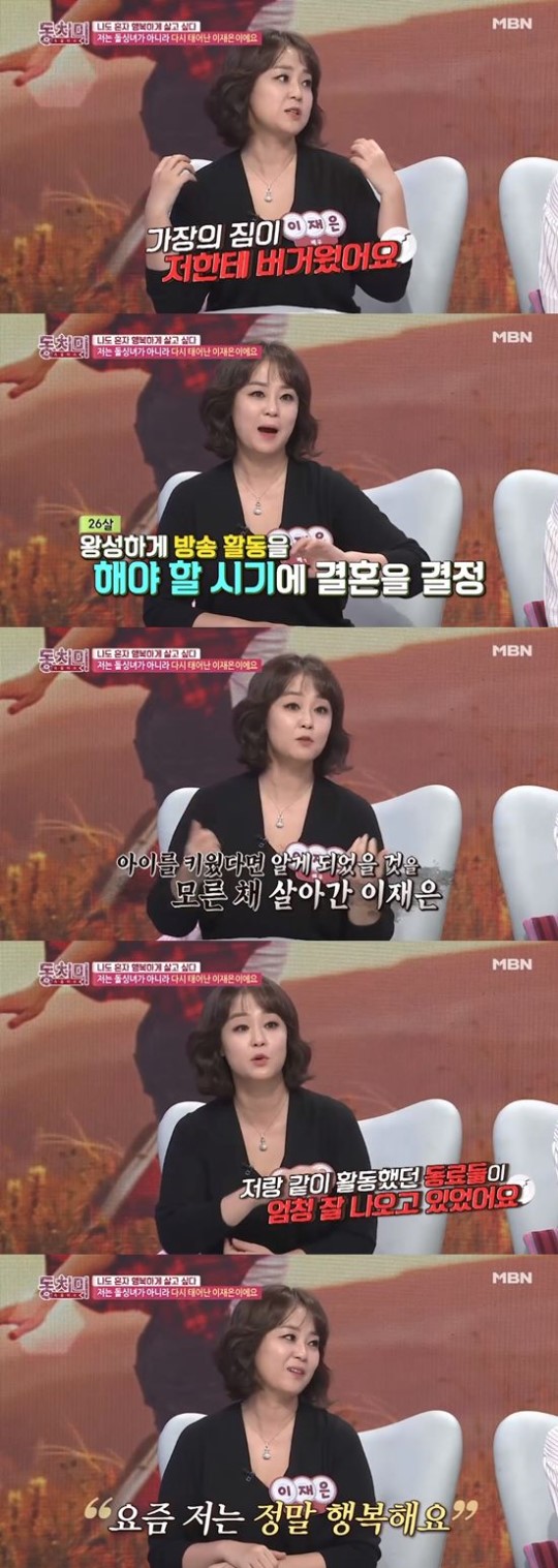 이재은은 22일 방송된 MBN '동치미'에서 "오랜만에 방송을 한다. 굉장히 지금 생각보다 많이 행복하게 살고 있다는 걸 이야기 하고 싶었다"라고 말했다.
