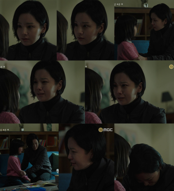 전수영은 괜찮다며 웃으며 그림을 보여주는 하나에게 “무서우면 무섭다고 해. 이제 아빠 없다고 했잖아. 너 하고 싶은 대로 해도 돼”라며 이야기했다. 하나가 고개를 돌리며 미소 짓자 전수영은 “왜 웃어? 진짜 마음은 울고 싶잖아. 무서워서 엉엉 울고 싶잖아. 아빠가 울지 못하게 해서 그래서 못 우는 거야? 엉엉 울면 너도 아가처럼 될 것 같아서?”라며 눈물지었다.