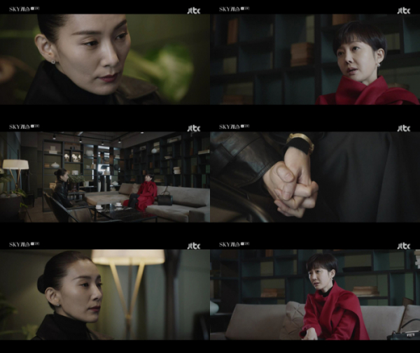 JTBC 금토드라마 'SKY 캐슬'의 배우 김서형이 염정아와 팽팽한 신경전 속에서 손까지 명연기를 펼치며 이목을 집중시켰다.