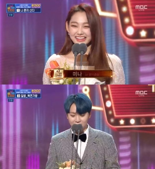 그룹 세븐틴 승관과 걸그룹 구구단 미나가 '2018 MBC 방송연예대상' 뮤직·토크 부문 남녀 신인상을 수상했다.