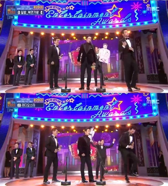 이어 '궁민남편' 팀은 깜짝 수상 퍼포먼스도 선보였다. 차인표가 랩을 하고 그에 맞춰 권오중이 춤을 춰 눈길을 끌었다.