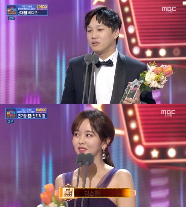 차태현과 김소현이 ‘2018 MBC 방송연예대상’ 뮤직·토크 부문 우수상을 받았다.