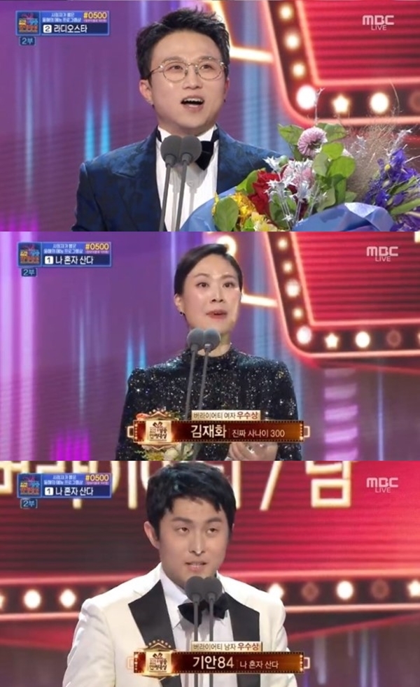 배우 김재화, 방송인 박성광, 작가 기안84가 '2018 MBC 방송연예대상' 버라이어티 우수상을 수상했다.