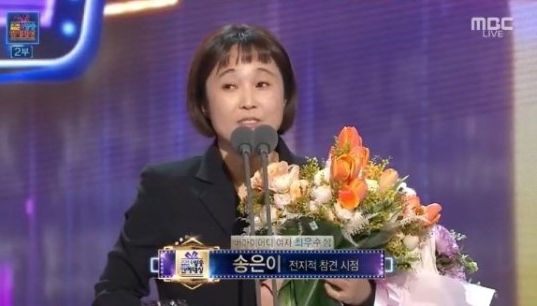 이어 송은이는 “MBC 시상식에 26년 만에 처음 왔다. 이렇게 상을 받게 돼 기분이 좋다”라며 "아무 생각도 나지 않는다. 말할 수 없이 기쁘고 좋다. '전지적 참견시점'의 테이블을 바라보는데 1년 동안 함께했던 순간들이 주마등처럼 지나가더라. 정말 내 일처럼 서포트해준 매니저들, 그 모습을 따뜻한 시선으로 담아내준 제작진 덕분에 많은 사랑을 받을 수 있었다. 다른 사람의 기쁨에 더 박수칠 때 행복하다는 걸 느끼고 있다"고 말해 감동을 자아냈다.