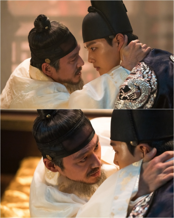 공개된 사진에는 장혁-여진구 부자(父子)의 투샷이 담겨 있다. 장혁과 여진구는 채 한 뼘도 되지 않는 거리를 사이에 두고 서로를 응시하고 있는 모습이다. 그러나 마주치는 시선 속에 따뜻한 부자의 정은 찾아 볼 수가 없다. 오히려 원수라는 말이 어울릴 정도로 매서운 눈빛을 발산한다. 무엇보다 여진구의 목덜미를 짓누르듯이 움켜쥔 장혁의 손과 살벌한 눈빛은 보는 것만으로도 오금이 저리게 만든다.