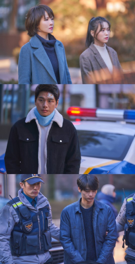 공개된 사진에는 한울센터 미라여인 살인사건, 소년 A 사건 등을 통해 강지헌(이이경 분)의 의심을 샀던 이은호가 경찰에 체포되는 모습이 담겨있다. 차우경(김선아 분)은 이은호의 모습을 보고 놀란 듯 충격 받은 모습이다. 앞서 정체불명 인물에게 피습당한 강지헌도 상처투성이에 깁스까지 한 채 차우경과 같은 공간에 있어, 심상치 않은 상황임을 암시한다.