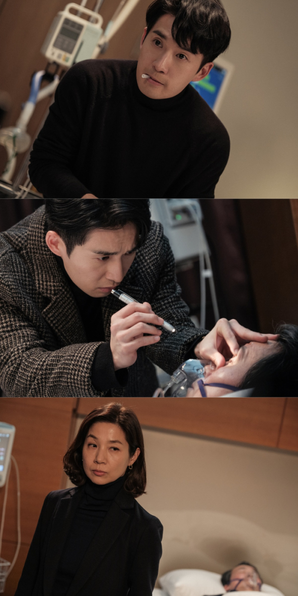공개된 사진 속 한치수의 병실로 병실로 납치된 한진우는 심상치 않은 상태를 금세 알아채고 날카로운 눈빛으로 해결책을 찾아내려 고군분투한다. 절박함이 느껴지는 한진우의 눈빛은 녹록지 않은 전개를 예고한다. 이어 서늘한 미소를 짓는 서실장(김호정 분)의 의미심장한 표정도 불안감을 더욱 증폭시킨다.