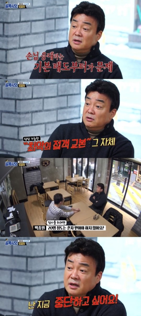 이날 백종원은 피자집을 방문, 시식단이 먹었던 음식을 직접 확인하기 위해 음식물 쓰레기를 뒤졌다. 백종원은 "차라리 중단하는 게 나을 수도 있다. 사장님이 포기해야 한다. 내가 바꿔줄 수 있는 게 한계가 있다. 포기해야 한다. 그런 집을 도와주면 나도 욕먹는다. 체질에 안 맞을 수도 있다"라며 권유했다. 피자집 사장은 "더 해보고 싶다"라고 아쉬워했고, 백종원은 "지금 판단에서는 중단하고 싶다"면서도 일주일의 기회를 줬다.