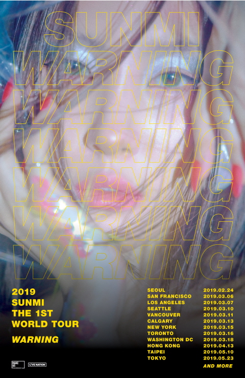 '2019 선미 THE 1ST WORLD TOUR [WARNING]'은 오는 2월 24일 개최되는 서울 콘서트로 시작된다. 이어 3월에는 샌프란시스코, LA, 시애틀, 밴쿠버, 캘거리, 뉴욕, 토론토, 워싱턴DC 등 북미 8개 도시에서 솔로로서 첫 월드투어를 이어가며 이후 홍콩, 타이페이, 도쿄 등 아시아 3개 도시까지 일정을 확정했다. 또한, 티저 포스터 속 ‘AND MORE’ 라는 문구로 예고한 2차 공연 일정에는 유럽 등의 지역이 추가될 것으로 알려졌다.