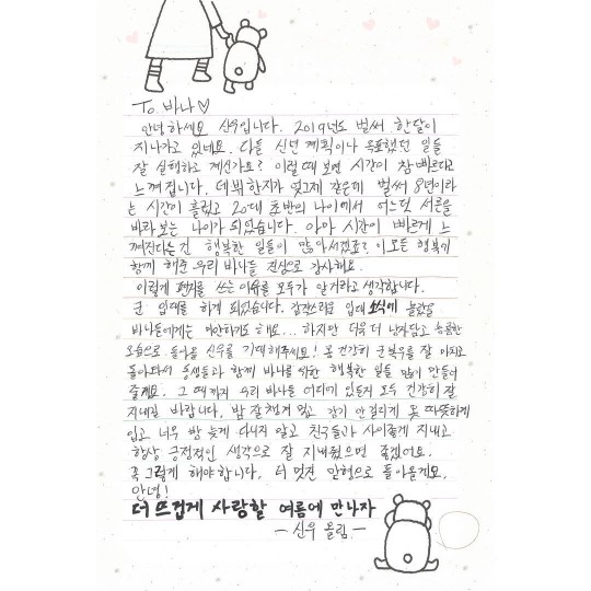 이렇게 편지를 쓰는 이유를 모두가 알 거라고 생각합니다. 입대를 하게 되었습니다. 갑작스러운 입대 소식에 놀랐을 바나들에게는 미안하기도 해요.