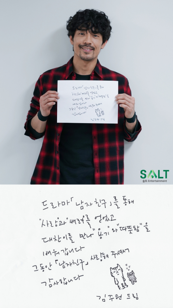김대찬은 24일 "드라마 '남자친구'를 통해 사랑과 배려를 얻었고, 대찬이를 만나 용기와 따뜻함을 배워갑니다"라며 드라마와 이대찬 캐릭터에 대한 남다른 애정을 드러냈다. 이어 "그동안 '남자친구'를 사랑해주셔서 감사합니다"라며 소감을 전했다.