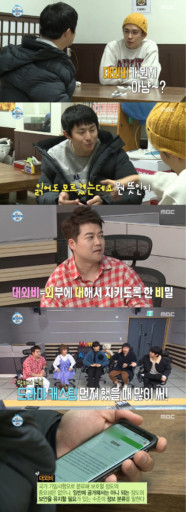 성훈은 자신이 대외비의 뜻이 뭔지 최근에 알게 돼 이를 공유하고 싶었다고 말했다. 기안84는 "큰 걸 외적으로 쓴다는 말 아니에요?"라고 답했다. 그러자 성훈은 인터넷 사전에서 '대외비'의 뜻을 찾아 보여줬다. 기안84는 "읽어도 무슨 말인지 모르겠는데요"라고 말했다.