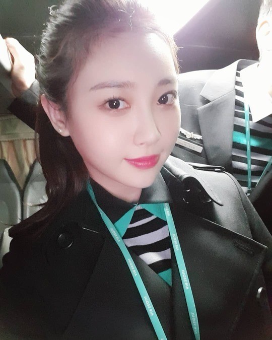 공개된 사진에는 유라가 승무원 복장을 하고 있다. 머리를 깔끔하게 묶은 유라는 또렷한 이목구비와 남다른 미모가 눈길을 사로 잡는다.