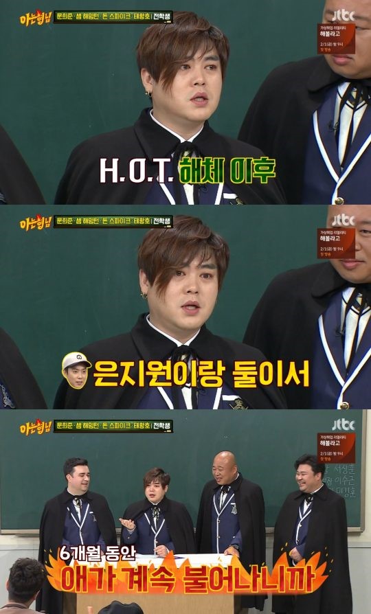 문희준은 “H.O.T.가 해체한 이후 은지원이랑 둘이서 일주일에 5일 정도, 6개월 동안 술을 마셨다”며 “이상하게도 지원이는 그대로인데 난 계속 살이 쪘다. 나중에는 지원이가 자기 때문에 살이 쪘다고 생각했는지 미안하다고 했다”고 말했다.