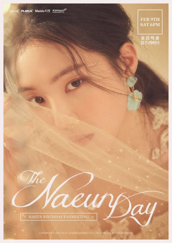 소속사 플랜에이엔터테인먼트 측은 지난 28일 에이핑크 공식 팬카페 및 SNS 채널을 통해 손나은 생일 팬미팅 ‘The Naeun Day’(더 나은 데이)’ 관련 공지를 게재했다. 팬미팅은 오는 2월 9일 오후 6시 서울 방이동 올림픽공원내 뮤즈라이브에서 열린다.