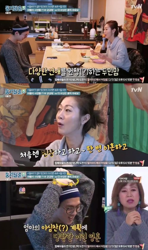 '둥지탈출3' 배우 방은희가 고등학생 아들 김두민에게 결혼과 관련된 조언을 했다.