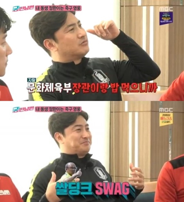 이날 안정환은 박항서와의 통화를 언급했다. 그는 "저번에 박쌤(박항서 감독)의 전화를 못 받았다"며 "다시 전화를 했는데, 보통 바쁘면 '이따 전화할게'라고 하지 않나. 이번에는 받자마자 '나 문화체육부장관과 밥 먹으니까 이따 전화해'라고 하더라"라고 말해 웃음을 자아냈다.