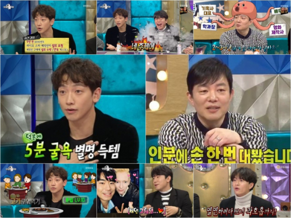 한편 7일 시청률 조사회사 닐슨 코리아에 따르면 전날 방송된 ‘라디오스타’는 수도권 기준 1부가 6.6%를, 2부가 6.1%를 기록했다. 이날 최고시청률의 주인공은 비로, 그가 혼밥을 한다고 고백한 부분이 수도권 기준 8.6%를 기록했다.