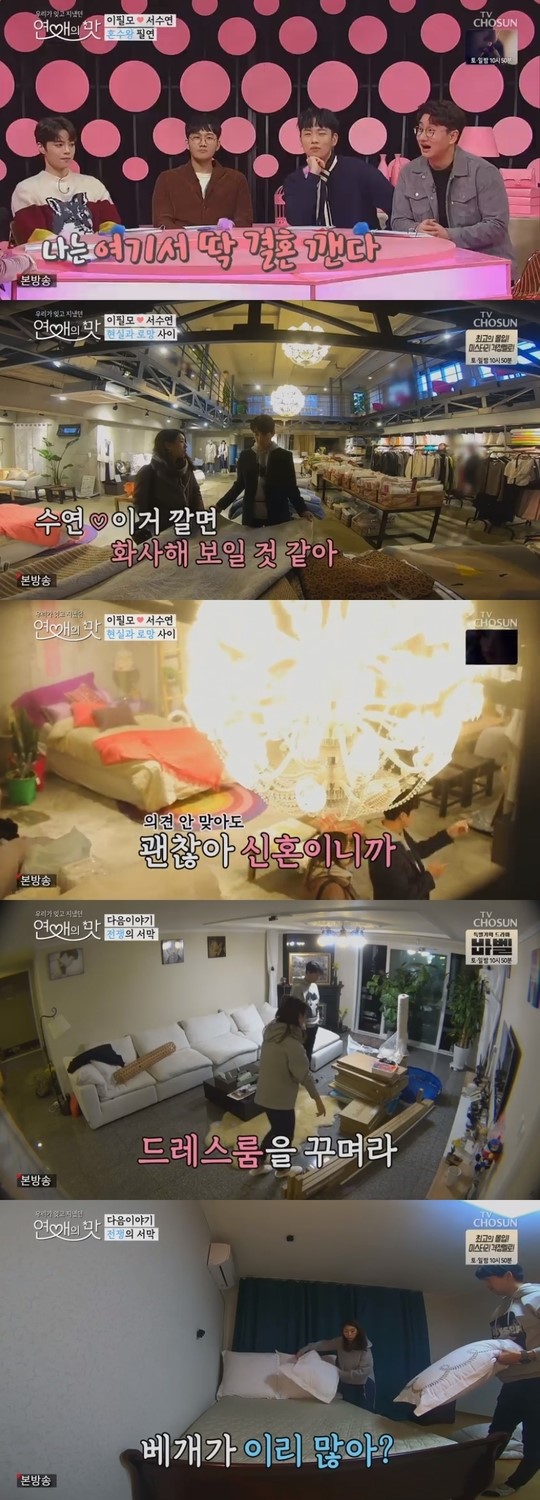 이날 방송에는 구준엽-오지혜 커플, 김정훈-김진아 커플이 더블 데이트를 즐겼다. 특히 이필모-서수연 예비 부부는 손수 신혼집 꾸미기에 나섰다.