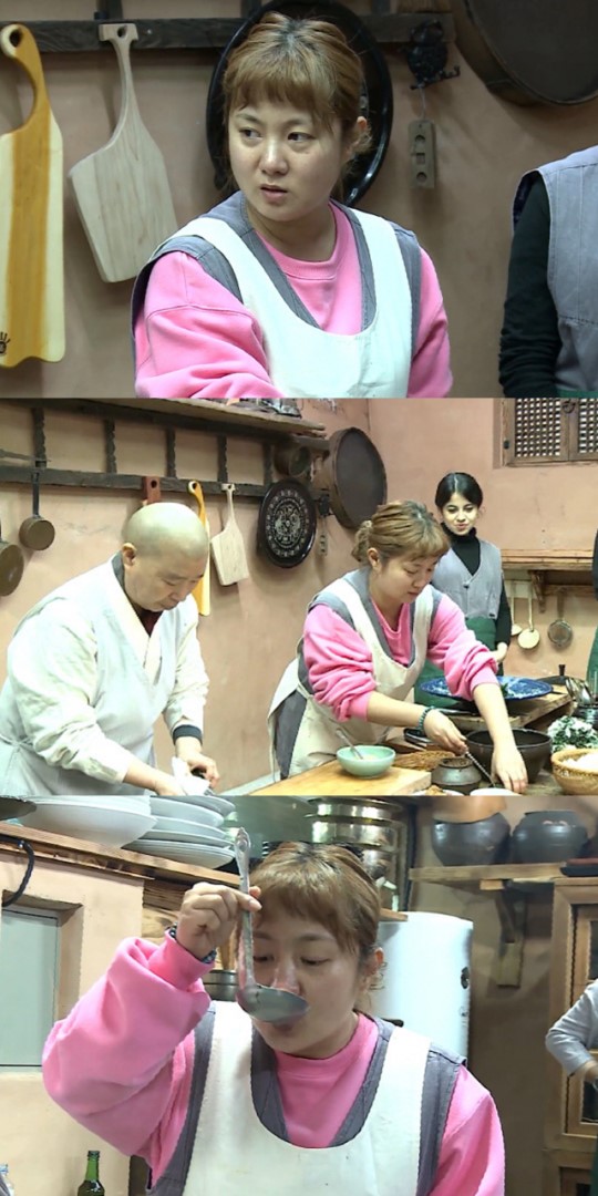 특히 그녀는 시키는 대로 요리하다가도 음식의 맛이 궁금해 스님 몰래 야금야금 맛을 보는 스킬을 발휘했다. 나물을 무친 손에 배인 참기름 향을 계속 맡을 뿐 아니라 손에 묻은 양념 한 방울까지 쪽쪽 빨아먹는 모습으로 웃음을 선사했다.