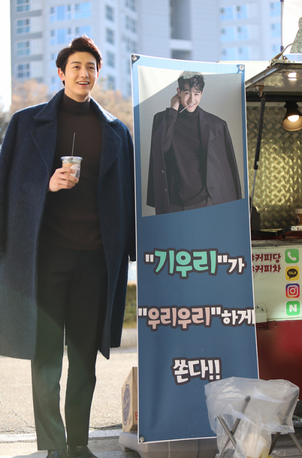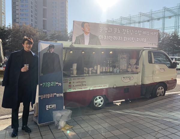 배우 이기우가 '운명과 분노' 마지막 촬영을 앞두고 배우들과 스태프들을 위해 커피차를 선물했다.