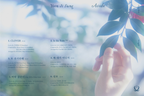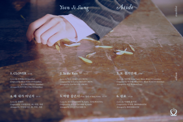 가수 윤지성이 첫 솔로 앨범 'Aside'의 트랙리스트를 공개했다.