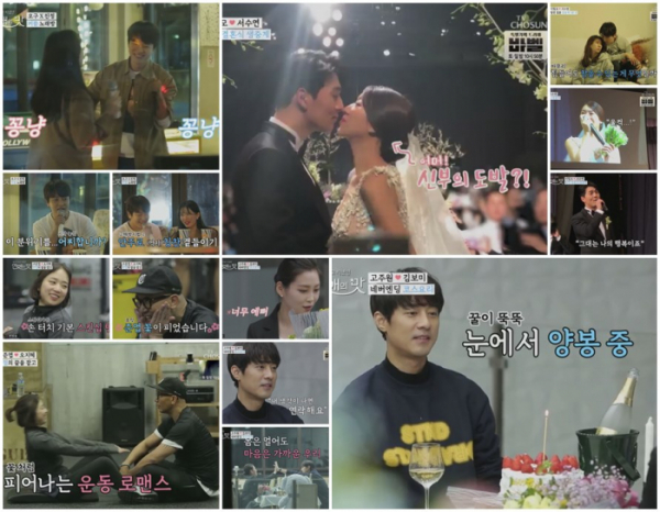 이날 진정한 부부가 된 이필모-서수연의 기적 같은 웨딩마치, 김보미의 취업을 축하하기 위해 생애 첫 코스 요리 이벤트를 펼쳤던 고주원, 꽁냥 초절정의 커플댄스를 췄던 김정훈과 김진아, 헬스장에서마저 설렘을 폭발시킨 구준엽과 오지혜가 담기며 재미와 감동을 줬다.