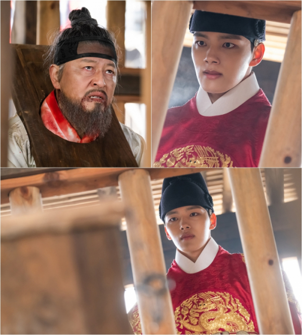 공개된 스틸 속 여진구가 홀로 권해효의 옥사를 찾았다. 권해효는 피범벅이 된 채로 목에 칼을 찬 모습이다. 그럼에도 여전히 독기 어린 눈빛을 보이고 있다. 그런가 하면 권해효를 내려다 보는 여진구 또한 격분한 표정으로 맞서 살얼음판 같은 긴장감이 느껴진다.