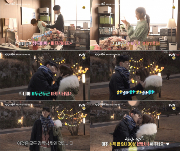 tvN 수목드라마 '진심이 닿다' 제작진은 4일 이동욱과 유인나의 '2단 키스' 촬영 비하인드 영상을 공개했다.