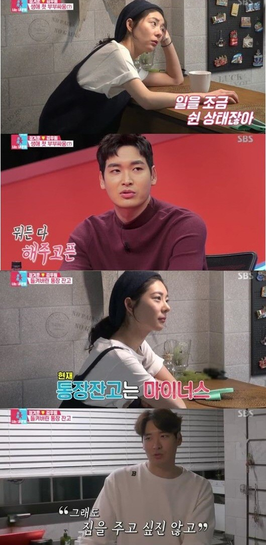 이날 정겨운-김우림 부부는 현실적인 문제에 부딪혔다. 김우림에게 피아노 레슨 문의가 들어왔고, 이를 들은 정겨운은 "돈은 내가 벌면 된다"고 말했다. 하지만 김우림은 "일을 좀 쉰 상태지 않냐"며 "도울 수 있는 건 돕겠다"면서도 연기활동을 쉬고 있는 정겨운의 재정 상황은 모른다고 했다. 정겨운은 "아내에게 통장을 줬지만, 잔액 확인은 하지 않은 것 같다. 현재 마이너스 통장"이라면서 "그래도 아내에게 짐을 지게 하고 싶지 않다"고 덧붙였다.