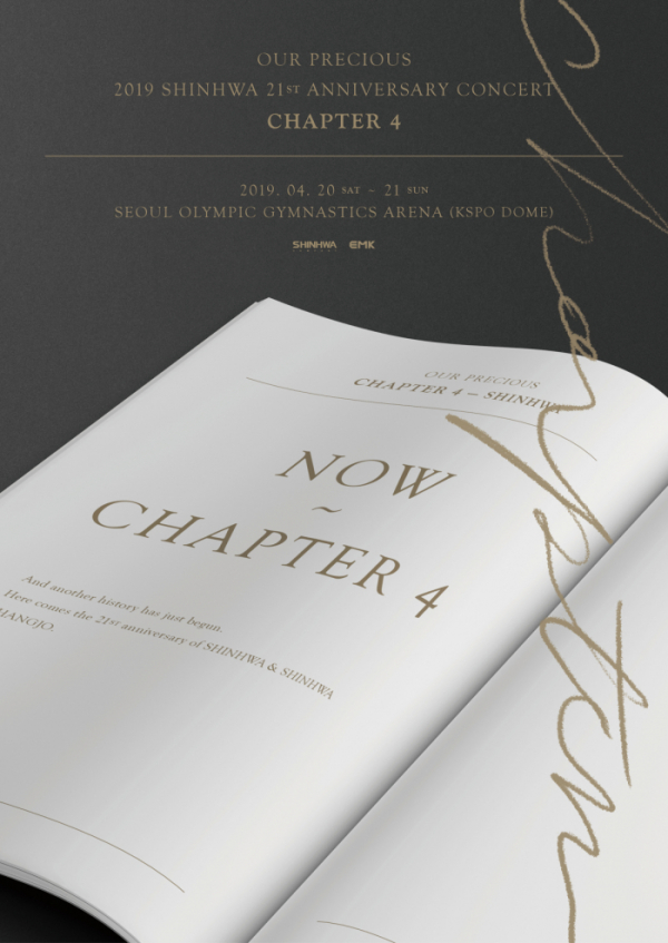 신화는 오는 4월 20~21일 양일간 KSPO DOME(올림픽 체조경기장)에서 데뷔 21주년 기념 콘서트 'CHAPTER 4'를 개최를 앞두고 오늘(7일) 일반 예매를 진행한다고 밝혔다.