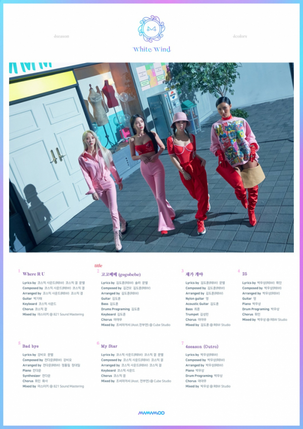 마마무는 11일 자정 공식 SNS를 통해 아홉 번째 미니앨범 '화이트 윈드(White Wind)'의 트랙리스트 이미지를 게재하며 완전체 컴백 초읽기에 돌입했다.