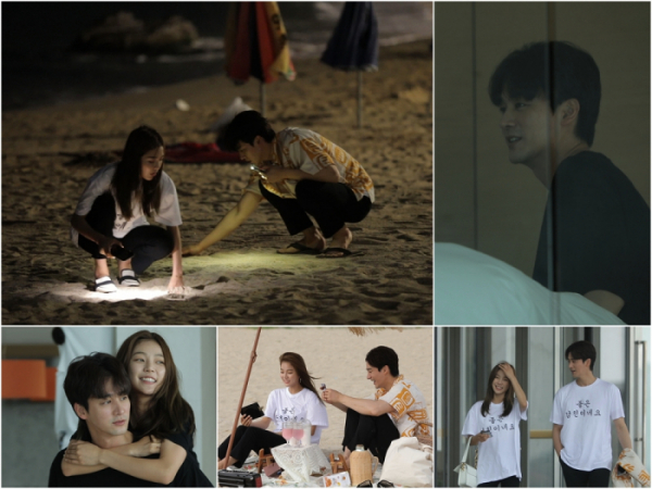 먼저 바닷가로 향한 두 사람은 엽서 종이에 서로에게 그림을 그려주고, 산처럼 쌓은 모래성 뺏기 내기로 서로에게 솜방망이 주먹질을 건네는 등 풋풋한 데이트를 이어갔고, 어둠이 찾아오자 숙소로 이동했다.