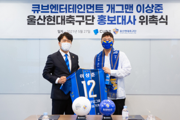 큐브엔터와 구단은 양사의 역량을 바탕으로 한 건전한 스포츠 문화 정착을 위하여 큐브엔터 소속 아티스트 개그맨 이상준씨를 구단 홍보대사로 발탁하고, 콘텐츠 제작 등 홍보활동에 대한 상호 협력 의사를 밝혔다.