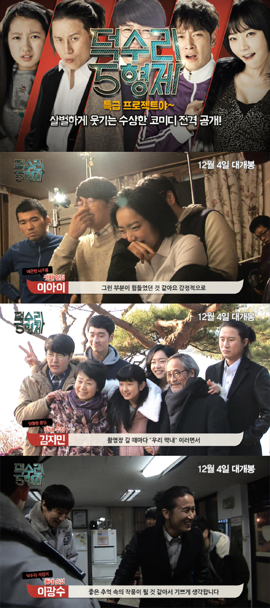 尤其是在拍摄中无法忍受爆笑的搞笑NG,还有演员之间的搞笑合作凸出的制作视频引起了人们的爆笑,并能猜测到现场愉快的气氛。比亲兄弟还有亲密的演员之间的友情和各自独特的角色融合在一起,以爆笑武装的喜剧《德水里五兄弟》,以独特的题材和最强搞笑喜剧,期待将在今年冬天引起观众的吸引。