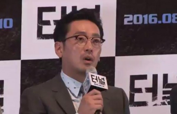 영화 '터널' 시사회 기자간담회에서 하정우, 오달수, 김성훈 감독이 기자들의 질문에 답하고 있다.