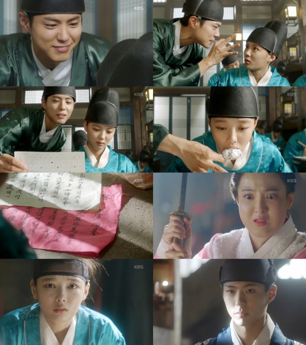 한편 덕분에 라온은 1차 시험에서 통을 받았지만, 마지막 2차 시험의 답안지를 백지로 내며 출궁 통보만을 기다렸다. 허나 출궁은커녕, 명은 공주(정혜성)의 상사병 증세가 적힌 도기(태항호)의 질문지에 대신 답을 써준 것이 화근이 됐다. 라온이 대신 쓴 답안지를 보며 정도령(안세하) 생각에 눈물짓던 명은 공주가 이내 연서와 시험 답안지 필체가 일치하는 것을 깨달은 것.