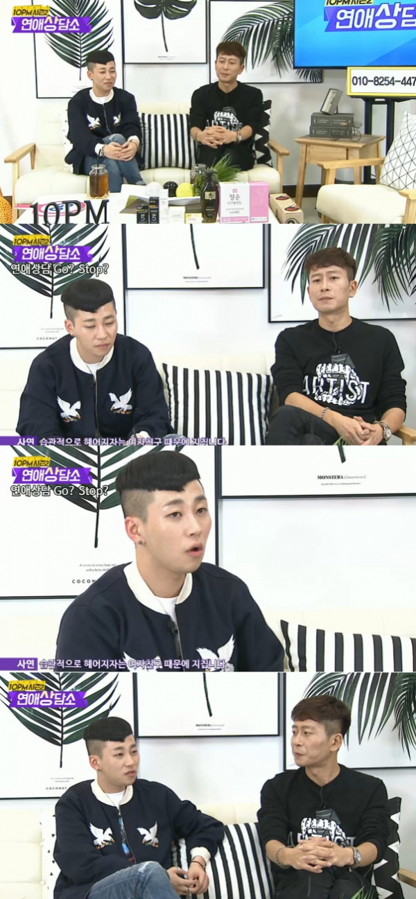 9일 네이버 V앱에선 10PM 시즌2 양재진, 딘딘의 ‘연애상담소’가 방송됐다. 이날 ‘연애상담 GO? STOP?’코너에선 습관적으로 헤어지자는 여자친구 때문에 지친다는 남자의 사연이 소개됐다.